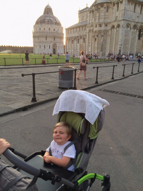 Po krásnej dovolenke sme ešte nevedeli, že sa o niekoľko týždňov vrátime do Toskánska, ale kvôli práci/terapii, čo v sme čase prvej návštevy ani netušili. Knihu od Glenna Domana – Jak pečovat o vaše postižené dítě – sme poznali už pred 2 rokmi, ale túto metódu podľa Domana sme považovali za priveľmi náročnú pre Tea. Na začiatku júna mi však vo facebooku došla správa, že sa v Pise o mesiac a pol koná školenie pre rodičov What To Do About Your Brain-Injured Child. Na poslednú zisťujeme podmienky a či sú ešte voľné miesta na kurz. Vidíme to ako príležitosť ako pohnúť s Tejkom viac, keďže jeho progres bol veľmi pomalý. Stále máme pocit, že má naviac – ale ako to z neho vydolovať? Opäť skúšame niečo nové s nádejou, že toto by mohlo pomôcť. Takže dobiehame štúdium knihy a potrebných materiálov v anglickom originále a vyrážame opäť na tisíckilometrovú cestu. Tejko s tatom chodia na prechádzky po Pise a mamina má denne 10 hodín prednášok 5 dní. Pocity boli silné – nádej, optimizmus a odhodlanie, ale zároveň aj sklamanie, že sme o veľa veciach nevedeli, keď mal Tejko rok. Rodičia z ostatných krajín mali deti vo veku do 1 roka a už vedeli o tejto metóde a mohli začať pracovať s dieťaťom oveľa skôr.